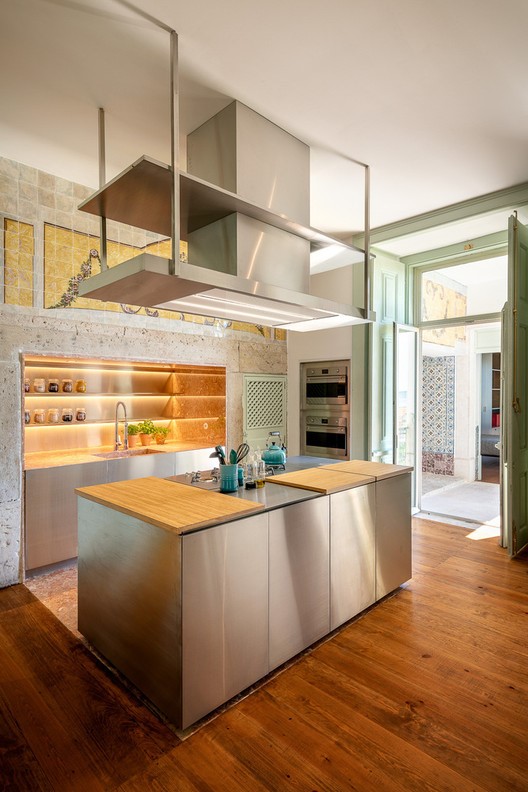 Os arquitetos recorrem esta solução quando uma das paredes da cozinha tiver uma grande abertura que impede que esta parede seja utilizada.