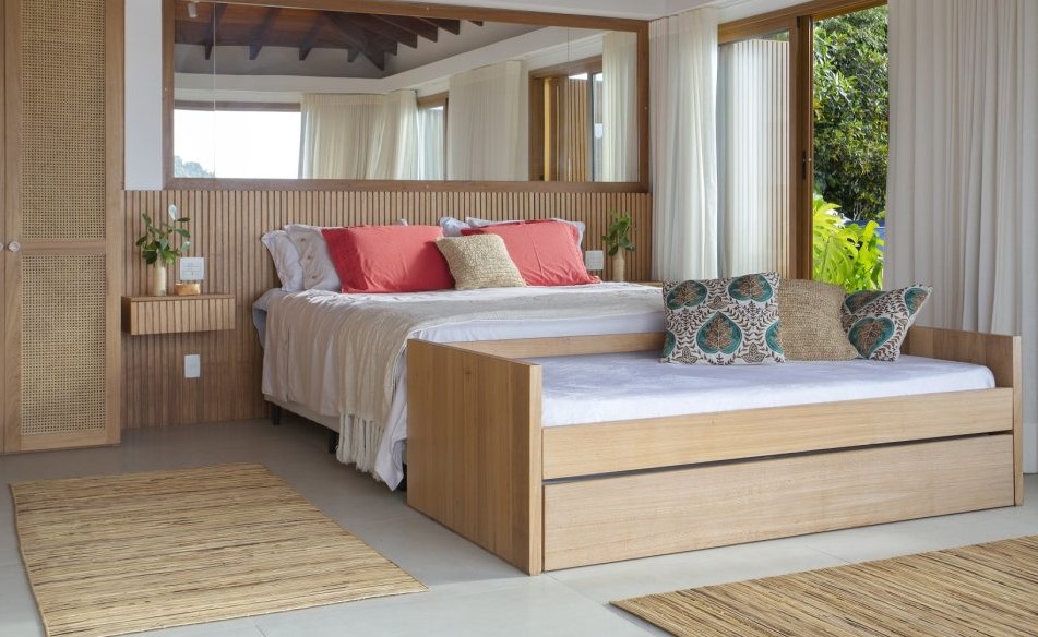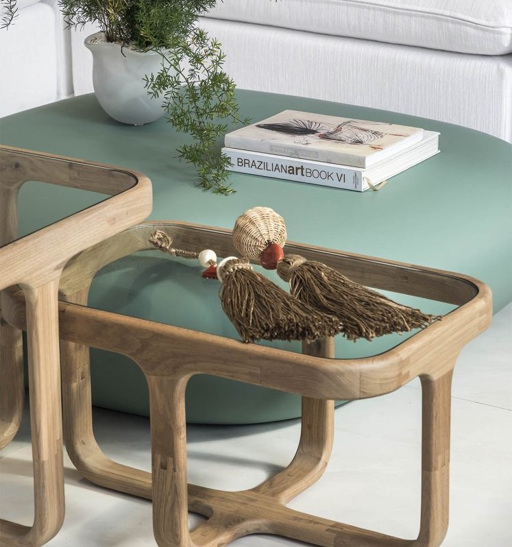 Mesas de diferentes tamanhos, sofás com base de madeira e baús são ótimas pedidas.