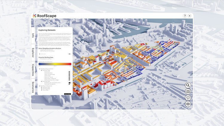 O RoofScape pretende, portanto, ser detalhado e informativo o suficiente para auxiliar os formuladores de políticas e planejadores urbanos, ao mesmo tempo em que é tão simples de usar que proprietários de edifícios individuais – e até mesmo apenas cidadãos interessados – podem “brincar de ver que tipos de usos surgiriam em seus edifícios” e na sua vizinhança.