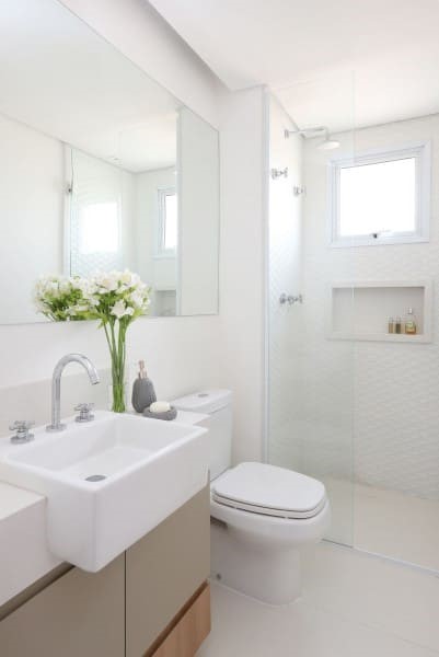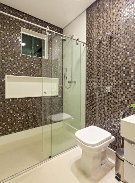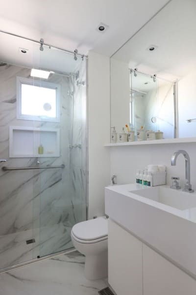 Esse tipo de nicho de porcelanato pode ficar em qualquer ambiente, mas geralmente é instalado no banheiro.