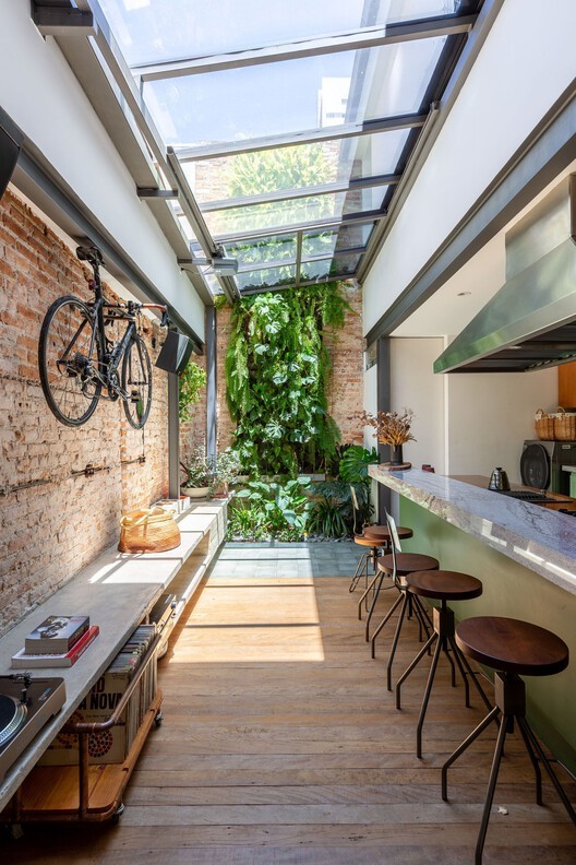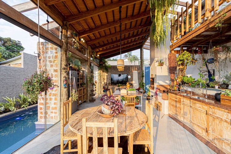 Assim, os recuos não são vistos como um corredor, mas sim como partes integradas de toda a casa.