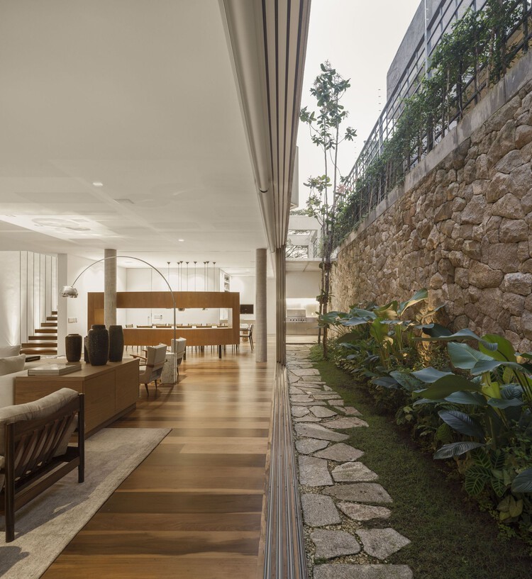 Com isso em mente, não fica difícil pensar em como os recuos laterais podem ser pensados para ampliar esses ambientes e serem aproveitados como espaços de estar.