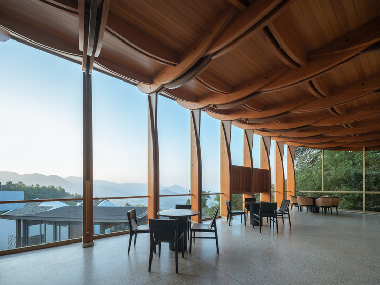 “A variedade de espécies de madeira no projeto e a iluminação natural que penetra na cortina de vidro maximizam a profundidade espacial e o calor do espaço simples. A Fazenda Mangmi é projetada para fornecer um refúgio para cidadãos que vivem em cidades densas com texturas frias, proporcionando um espaço para relaxar e se conectar completamente com a natureza.”