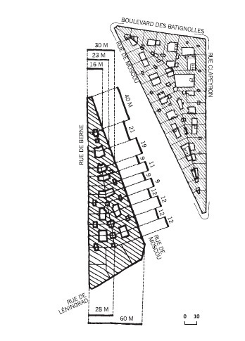 Quadras e dimensões Haussmann. Imagem via Urban Forms: The Death and Life of the Urban Block por Ivor Samuels, Phillippe Panerai, Jean Castex, Jean Charles Depaule
