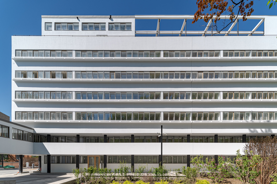 Como a fachada da rua fazia referência à qualidade arquitetônica urbana, vãos estreitos e salientes alternados correspondiam às escadarias e as cozinhas, enquanto vãos amplos correspondiam a varandas.