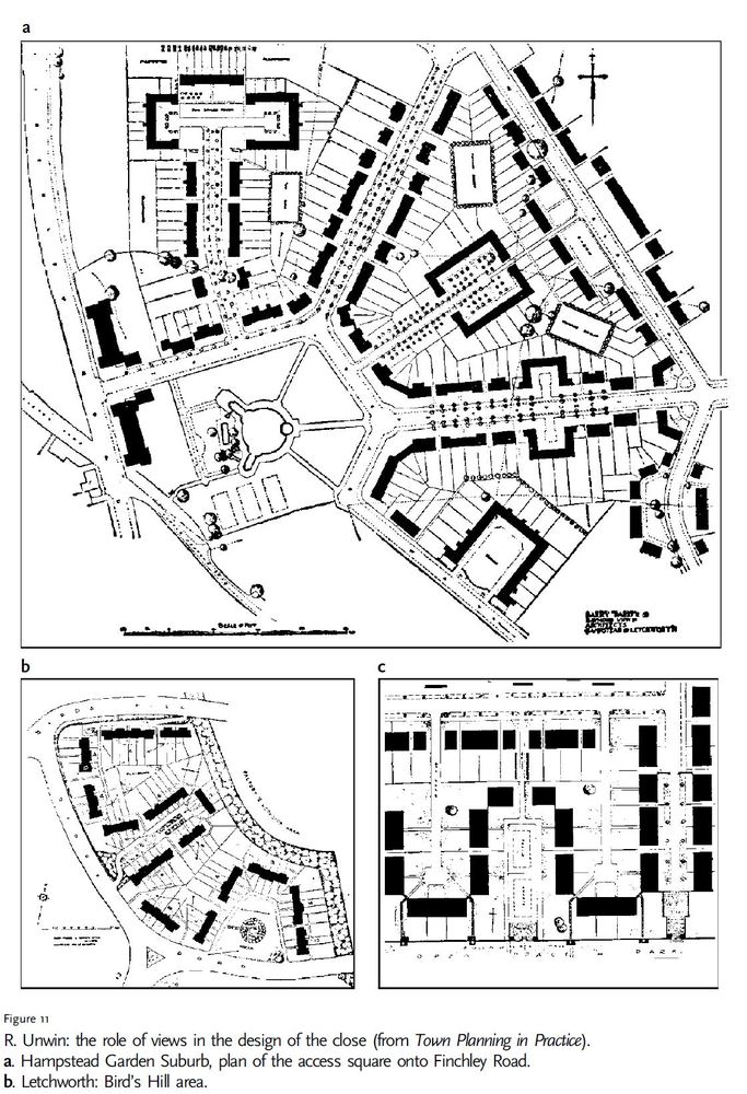 No subúrbio ajardinado de Hampstead, por exemplo, foi dada atenção à criação de uma sensação comunitária e de vizinhança entre chalés bem localizados, originalmente destinados a misturar todas as classes sociais.