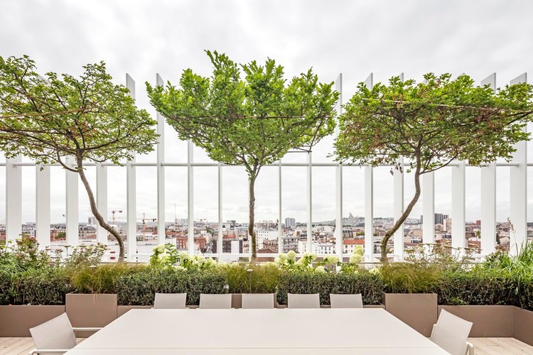 Um térreo paisagístico e um Sky Garden na cobertura contemplam árvores, ventilação natural e vistas de toda a cidade.”