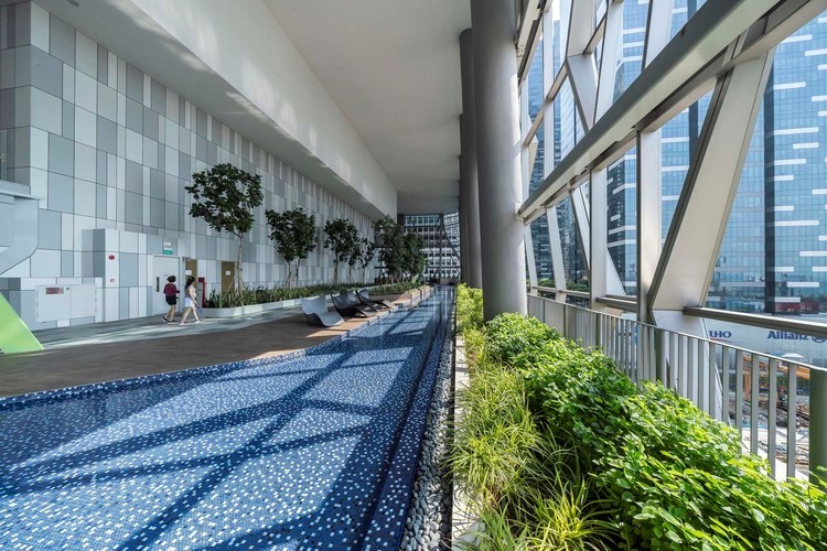 “Além dos programas de escritório e residencial, as torres abrigam jardins suspensos que oferecem uma vista panorâmica de 360 graus de Singapura e abrigam uma variedade de comodidades, tais como academia, piscinas e uma área de lazer para crianças, com uma vegetação verde exuberante que proporciona um ar mais fresco e limpo. Estas áreas proporcionam espaços para atividades comunitárias compartilhadas, ou para que os residentes entretenham os hóspedes.”
