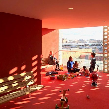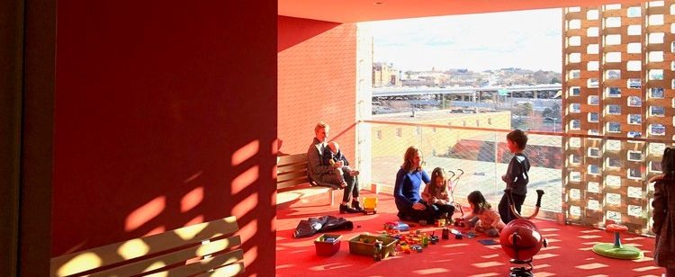 “Os arquitetos acrescentaram áreas de lazer ao ar livre em cada nível para evitar que as crianças descessem dos elevadores para chegar às brincadeiras ao ar livre”.