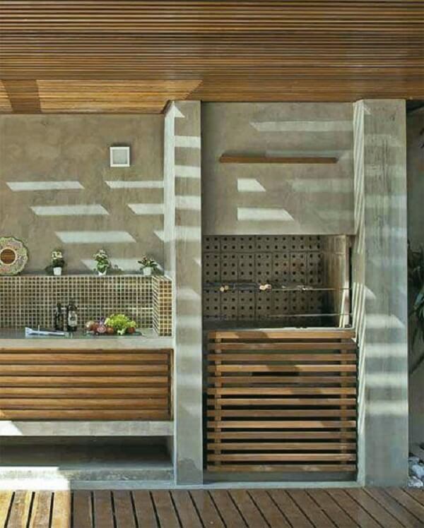 3. O revestimento para churrasqueira de alvenaria e elementos em madeira formam uma combinação perfeita. Fonte: Pinterest