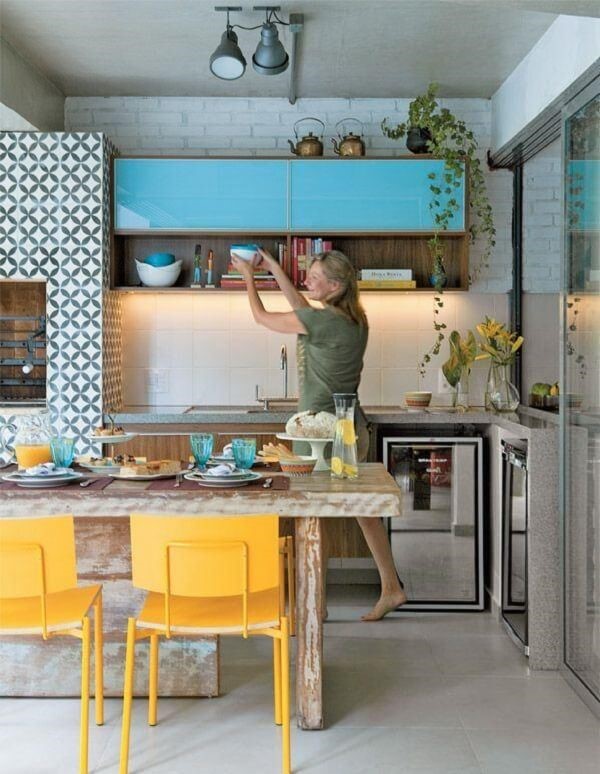 4. Inove e aposte no revestimento para churrasqueira feito com cerâmica colorida. Fonte: Pinterest