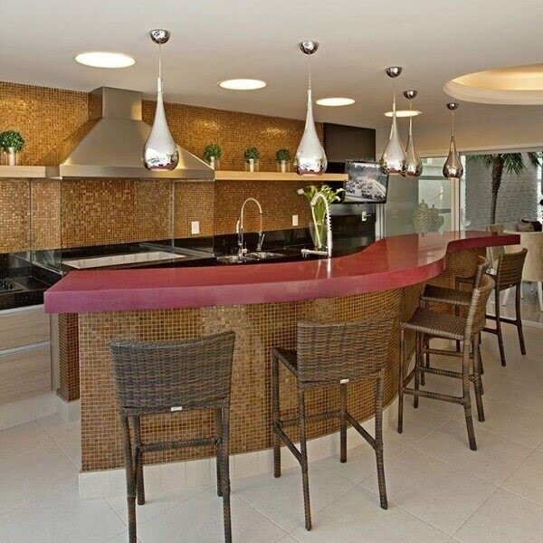 7. O revestimento para churrasqueira feito com pastilhas de vidro laranja deixaram a decoração ainda mais ousada e moderno. Projeto por Iara Kílaris