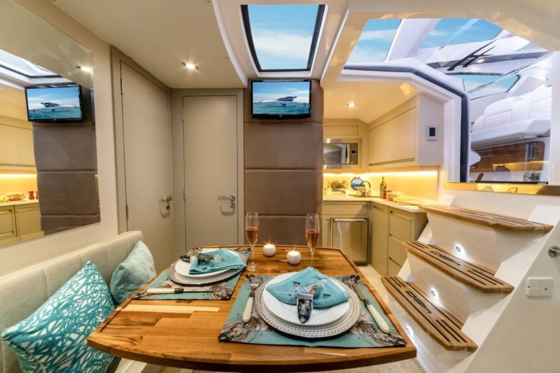 O iate tem capacidade para até 14 pessoas durante o dia e quatro para a pernoite, a empresa promete entregar no barco, uma verdadeira mansão em alto mar com o aproveitamento de espaços, conforto e circulação.