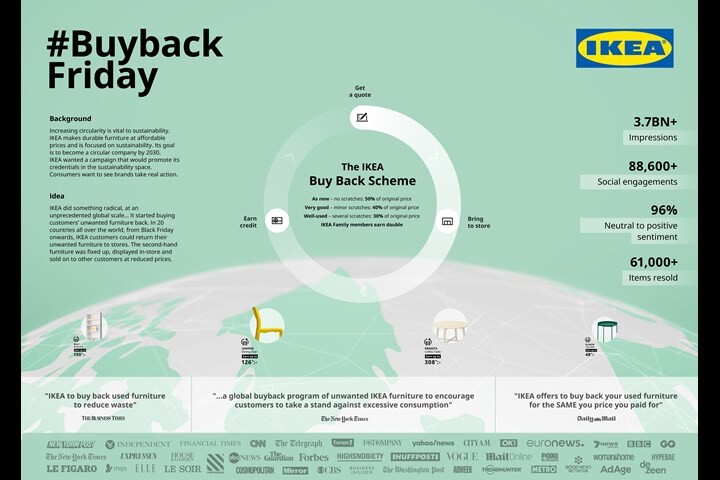 O programa Buy Back ,criado pela gigante varejista marca, troca móveis usados por um cartão com bônus para os clientes comprarem outros itens na loja e fazem uma pequena reforma para revender esse mesmo móvel por um preço mais barato.