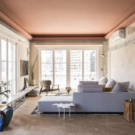 Este apartamento de 160 m² situa-se em uma joia dos anos 1950 na Avenida Paulista: o edifício Saint Honoré. Projetado pelo escritório SuperLimão, o imóvel expõem todas as marcas de tempo e o toque de cor foi a saída encontrada pelos arquitetos para acrescentar um toque contemporâneo ao espaço. Sendo assim, todo o teto foi pintado de pêssego.
