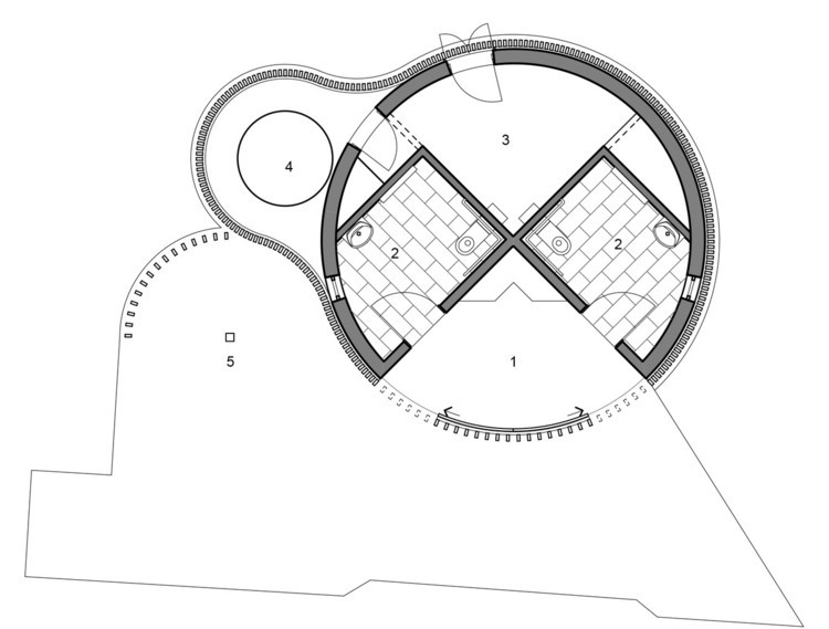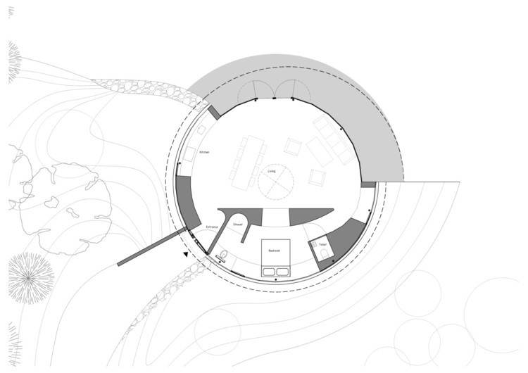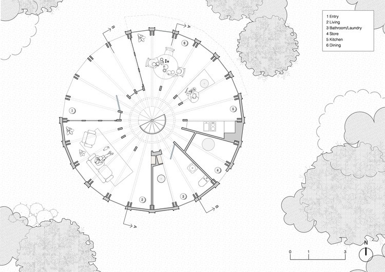 Em alguns casos, como a 360 Villa de 123DV ou a St. Andrews Beach House de Austin Maynard Architects, os espaços internos são organizados e moldados radialmente, como se emanassem do centro do plano circular.