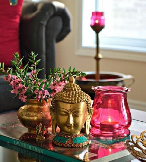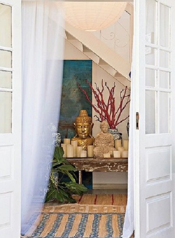 O altar é um elemento muito presente nas casas indianas, por isso a dica é reservar um espaço na decoração do imóvel para acomodar um altar com estátuas, velas, incensos, plantas e demais itens que desejar.
