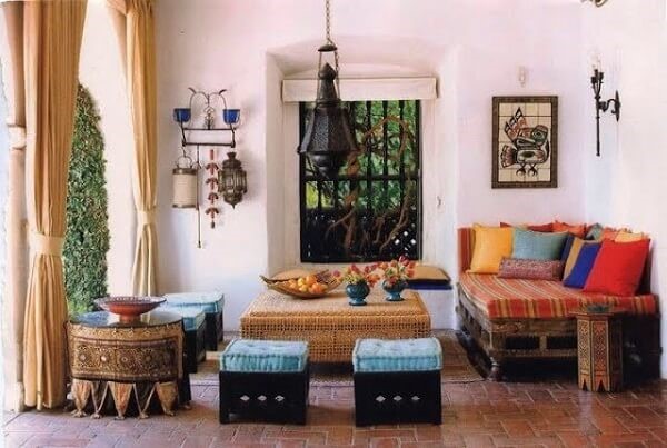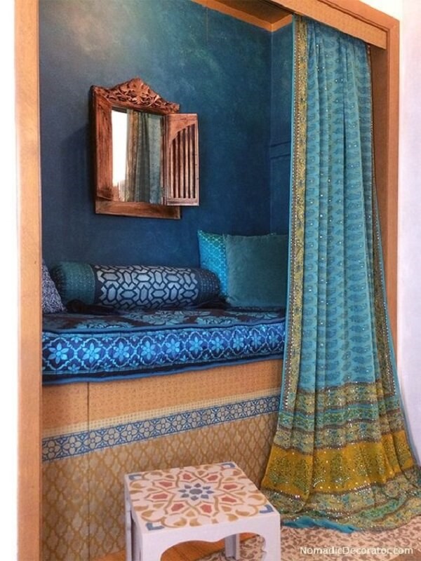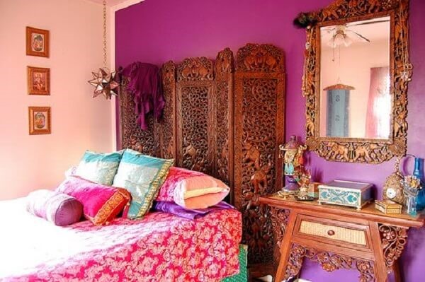 A decoração indiana é marcada pela presença de tons quentes e vibrantes tanto nas paredes como nos demais móveis e objetos decorativos presentes no ambiente.