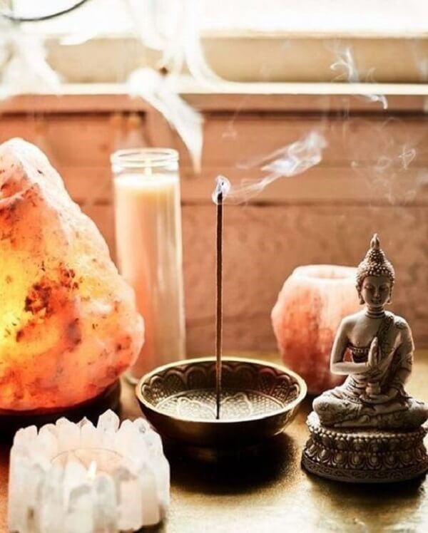 E por falar em aromas, os incensos também não podem faltar na decoração indiana. No ambiente, você pode deixar o incenso exposto sobre um porta incenso até o momento de ser queimado por completo.