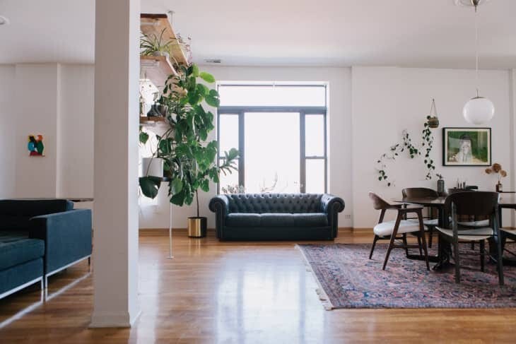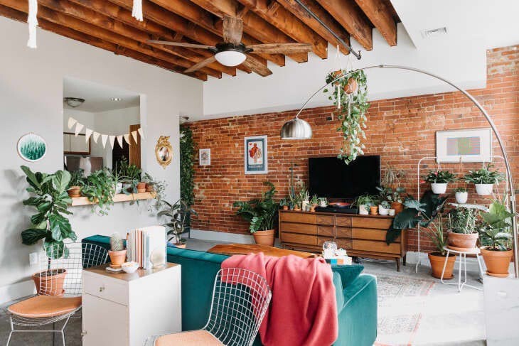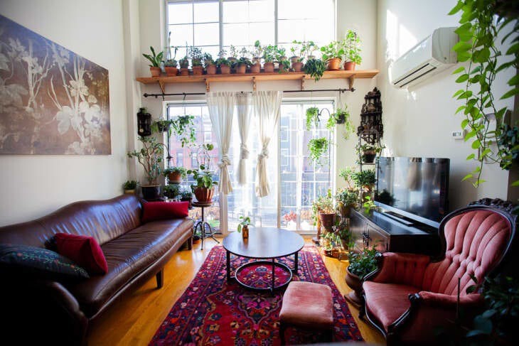 As plantas agem como uma espécie de “parede” sem fazer com que a sala pareça fechada – e não custa caro para fazer.