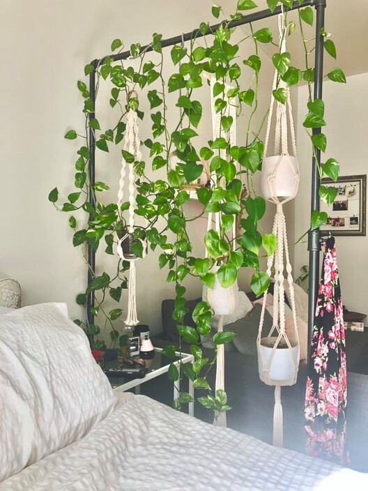 Se você quer separar ambientes, mas não quer a dor de cabeça das reformas, você pode usar as plantas, que ficam penduradas em varas ou prateleiras suspensas.