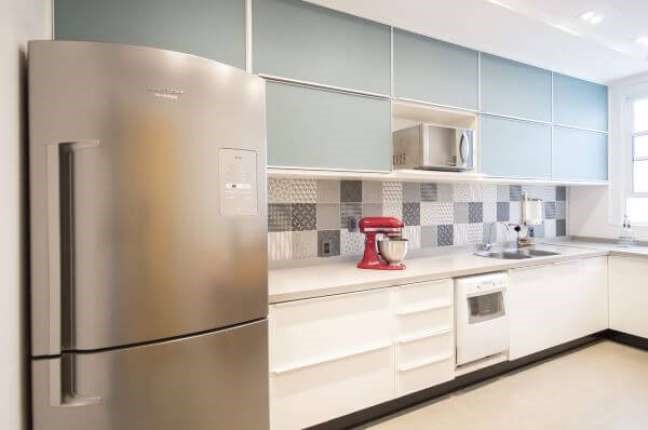 É importante pensar na harmonia entre os armários e os revestimentos do ambiente.