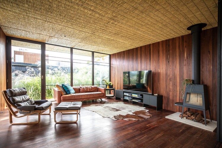 Por outro lado, a arquitetura contemporânea também está buscando encontrar, e resgatar, outros tipos de materiais, como é o caso do Pavilhão Verde / Tom Munz Architekt que usa forro de borracha e da Casas Casa Seddon / Clinton Murray Architects que usa forro de palha.