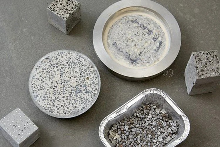 Isso resulta em um material cerâmico semelhante ao concreto.
