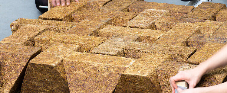 Basicamente, Sugarcrete™ é criado combinando bagaço com ligantes minerais.