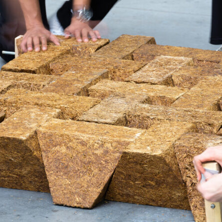 Como Alan Chandler explica, “a ética da inovação material para lidar com a crise climática deve projetar a cadeia de suprimentos, bem como a especificação de desempenho. O carbono está no topo da lista; Também devemos mencionar a toxicidade em relação à saúde e a segurança nos processos de construção. Usando bagaço e outros produtos biológicos de crescimento rápido em combinação com ligantes minerais inertes não apenas para camadas de isolamento, mas também para estruturas, elimina as linhas de produtos quimicamente malignas e baseadas em combustíveis das obras. Isso responde diretamente às prioridades de segurança da Lei de Segurança de Construção durante as sequências de fabricação, construção, demolição, reutilização e descarte”.