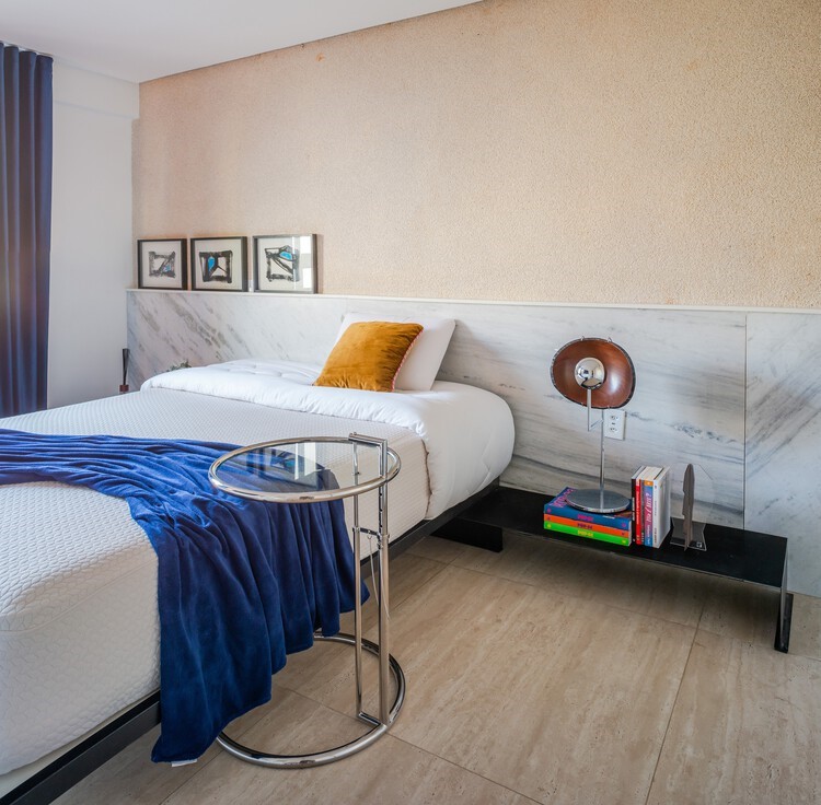 Aqui, cabeceiras oferecem distintas possibilidades de uso e marcam o espaço por seu desenho, podendo, inclusive, separar ambientes ou conectá-los.