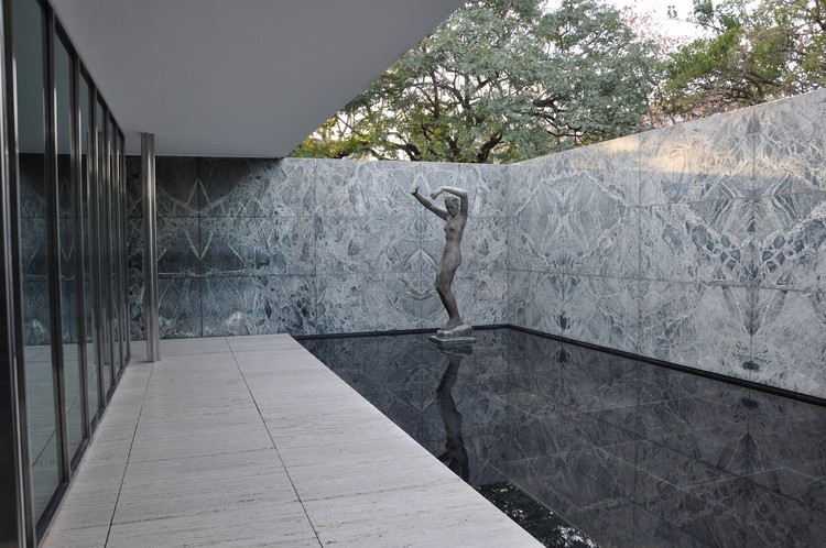 Como Claudia Cabral afirma belamente, “no delicado equilíbrio de Mies, pautado por assimetrias parciais e por um sistema de compensações, a escultura é o único elemento que não tem par […] Mies decidiu colocar apenas uma única escultura, um único elemento figurativo singular no seu plano abstrato. No jogo de reflexos, transparências e rebatimentos do pavilhão, os pares possíveis da figura de bronze somos nós, humanos de carne e osso, os visitantes.”
