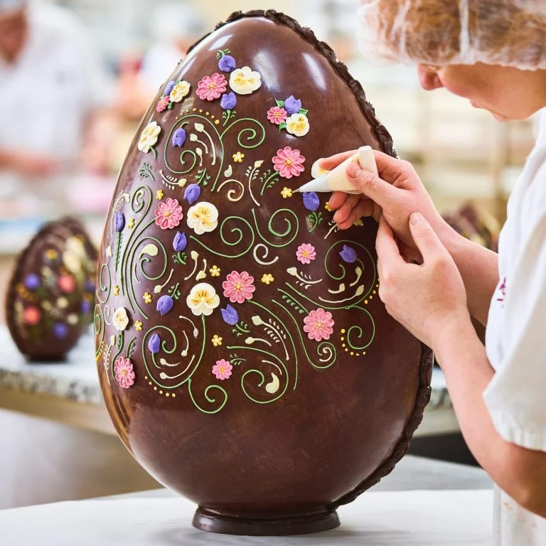 Já é tradição que a centenária confeitaria inglesa Bettys faça ovos de Páscoa extravagantes para cada ano. Em 2025, a criação traz 5 kg de chocolate suíço Grand Cru e detalhes florais esculpidos à mão.