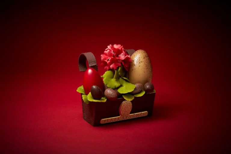 Inspirado nos emblemáticos gerânios da varanda do hotel, um dos mais icônicos e luxuosos de Paris, este ovo exclusivo é vendido na La Galerie e representa a elegância parisiense em forma de chocolate.