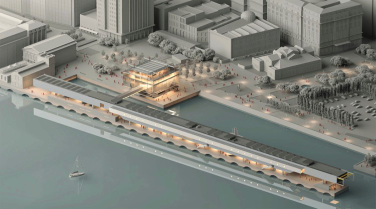 “O título da proposta é ‘Convocar o comum das águas’. O projeto procurou retomar a proximidade com a água e o que ela pode representar como espaço comum entre as diferenças. A água é inconstante, varia todos os dias, aproxima e afasta as pessoas, os continentes, os animais. Queremos reivindicar essa relação. A gente tira partido do imaginário portuário: os visitantes terão que atravessar a água para entrar no Museu Marítimo do Brasil, como quem entra em uma embarcação para encontrar diferentes culturas”. — Rodrigo Quintella Messina