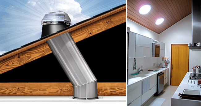 A claraboia tubular é um tubo que conecta o telhado com o teto do ambiente.