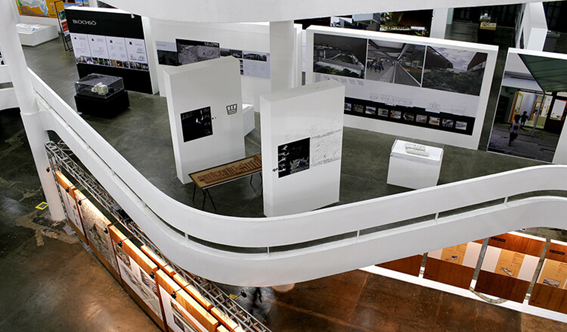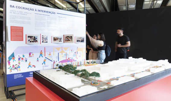 A expografia, assinada pelo arquiteto Álvaro Razuk, aposta em uma estrutura modular com andaimes de seis metros de comprimento, pensada para apresentar projetos, planos, maquetes e vídeos.