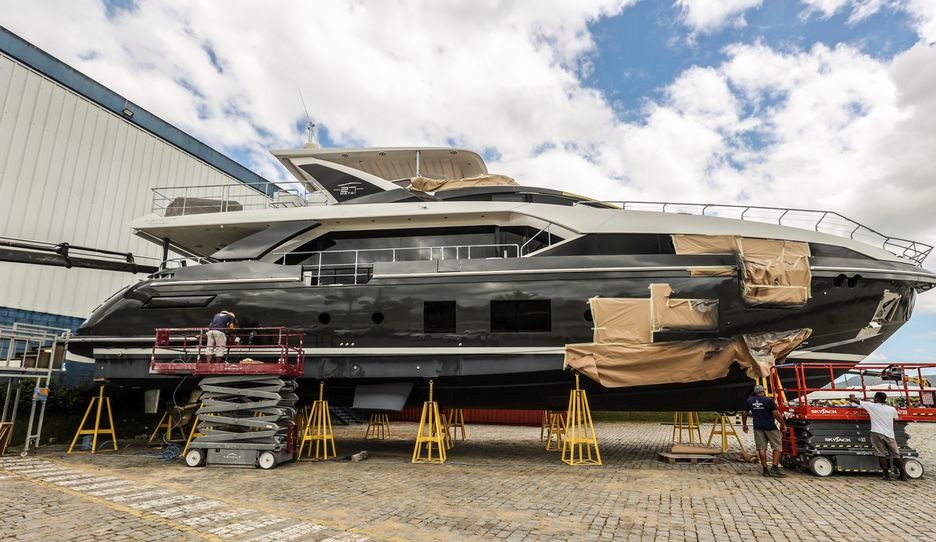 Iate de luxo da Azimut recebe pintura. Foto: Anderson Coelho/Estadão