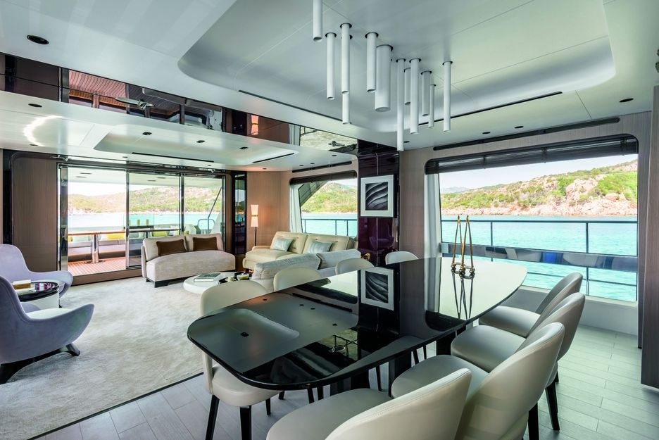 Sala do megaiate 27 Metri, da marca italiana Azimut, vendido no País por ao menos R$ 54 milhões
