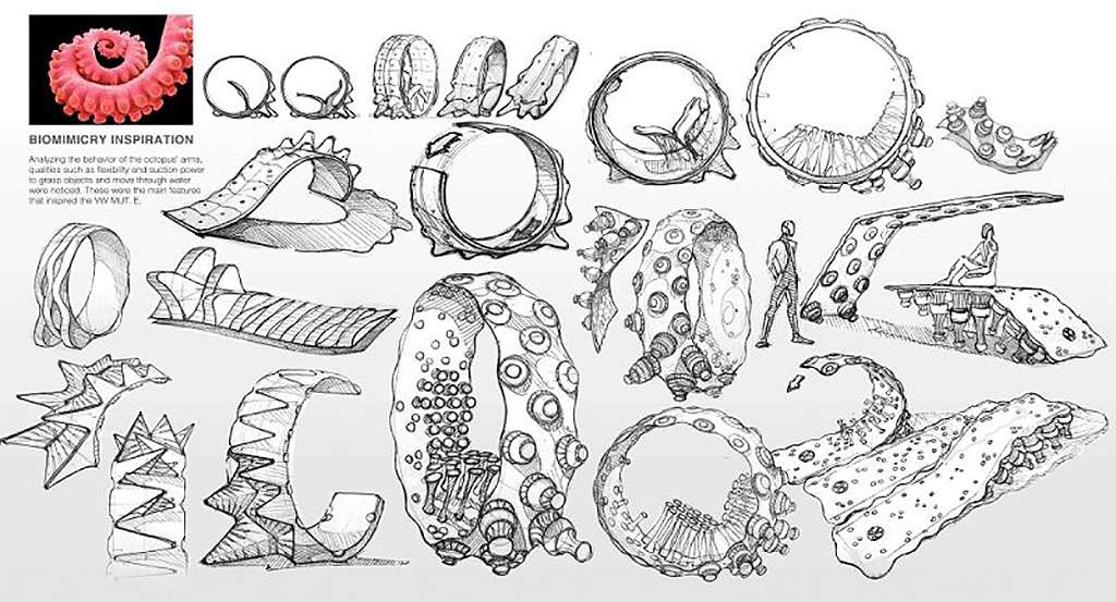 A ideia central para a criar o MUT.E é a biomimética, uma abordagem que estuda a função dos organismos na natureza e tenta imitá-las em funções nos produtos a serem criados pela indústria.
