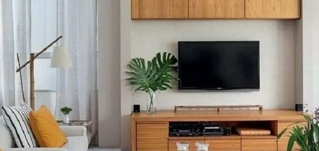 O rack com painel suspenso também é uma opção muito interessante para otimizar o espaço da sala.