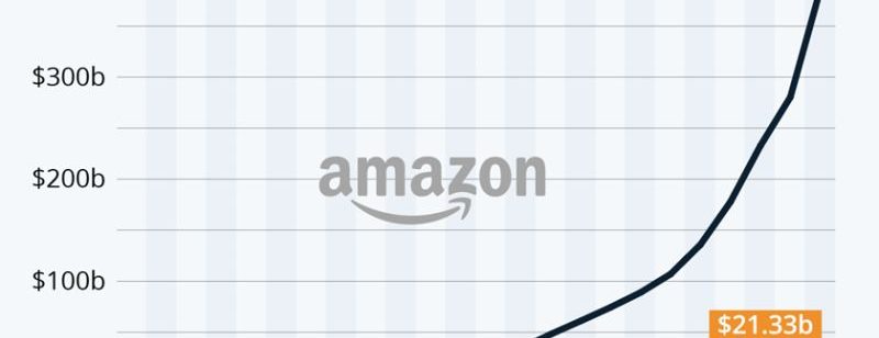 Em 2020 a Amazon faturou US$ 386 bilhões, com lucro líquido do período crescendo 84% em relação ao ano anterior.