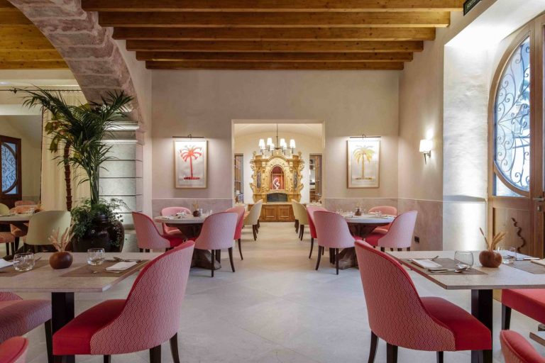 A cozinha é farm-to-fork com ingredientes frescos cultivados na propriedade, onde a sustentabilidade é palavra-chave, e o restante adquirido no entorno. São dois restaurantes: Sa Terrassa para café, almoço e jantar e Sa Tafona, bar de tapas que ocupa o local de uma histórica prensa de azeitonas.