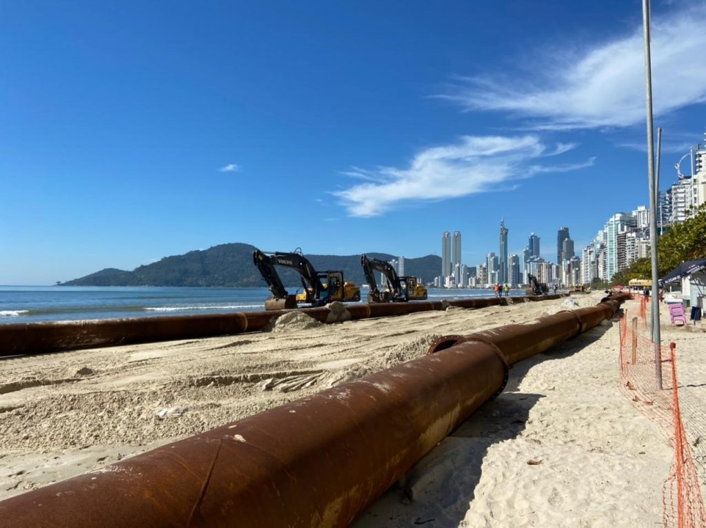 Começou no dia 21, em Balneário Camboriú, mais uma etapa da obra de recuperação da faixa de areia da Praia Central.