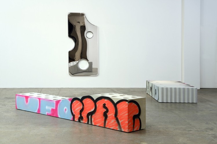 A coleção Efflorescence para a Galeria Kreo em Paris, 2019 foi fortemente inspirada no Brutalismo, apresentando pesados blocos de concreto envoltos em arte de rua.
