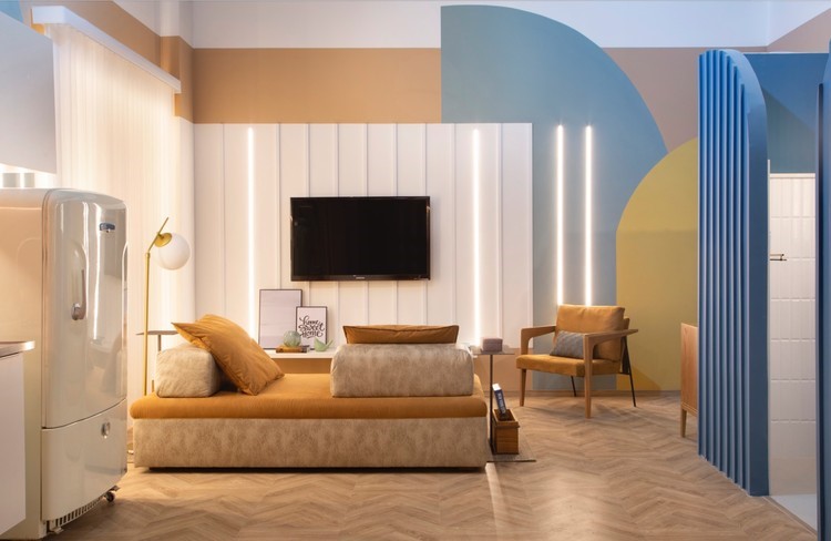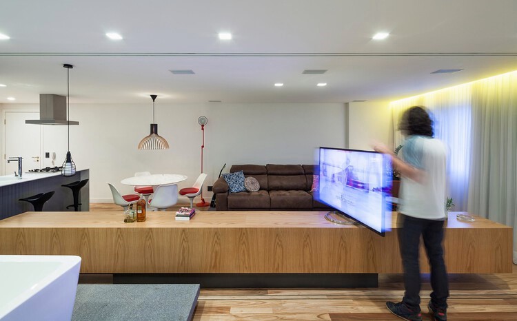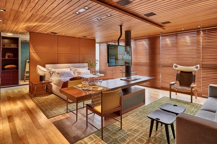 Para aqueles que pretendem maior versatilidade no modo como a televisão impacta o espaço, desenhar um mobiliário apropriado pode ser uma boa solução.