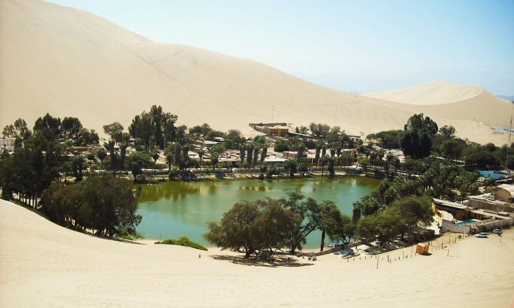 Huacachina é o único deserto natural da América do Sul, com grandes dunas de areia e um vilarejo (que parece um oásis) no meio do deserto onde moram cerca de 100 pessoas que hoje vivem do turismo local.