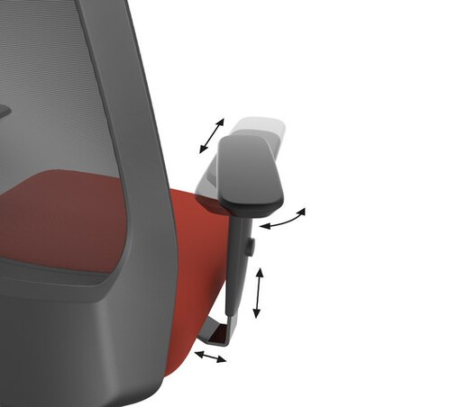 Apoio de braços: Ajustes de Altura, Lateral, Frontal e Inclinação