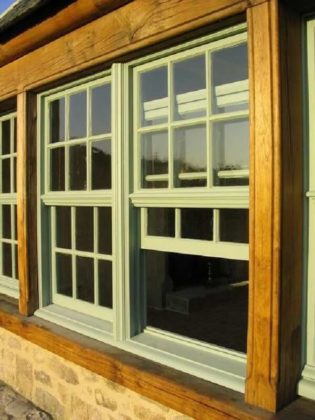 Também é comum encontrar janelas nesse estilo, apesar de estas serem menos comuns hoje em dia, devido aos outros modelos de janelas terem se tornado mais populares.
