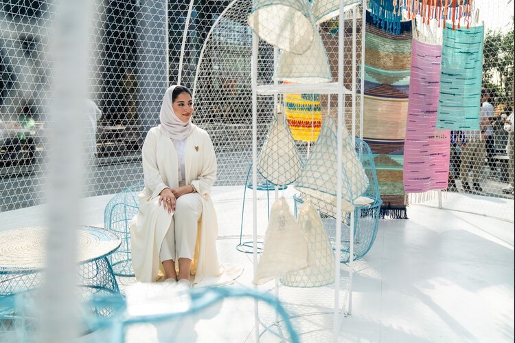 O projeto também incorpora a tecelagem tradicional de palmeiras (Sa’af) e tecidos naseej, produzidos e trabalhados por bahreins locais.